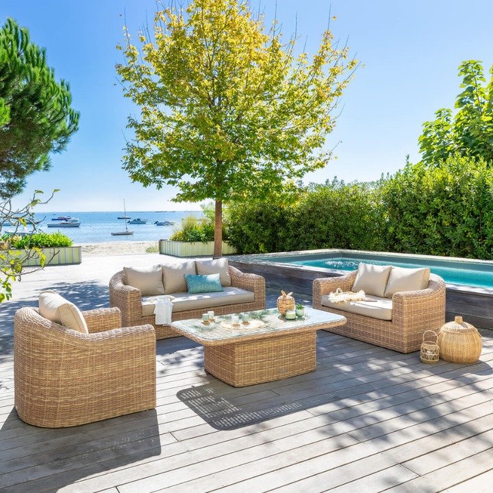 Fabriqué avec des matériaux de haute qualité, ce salon assure une durabilité et une résistance aux intempéries.